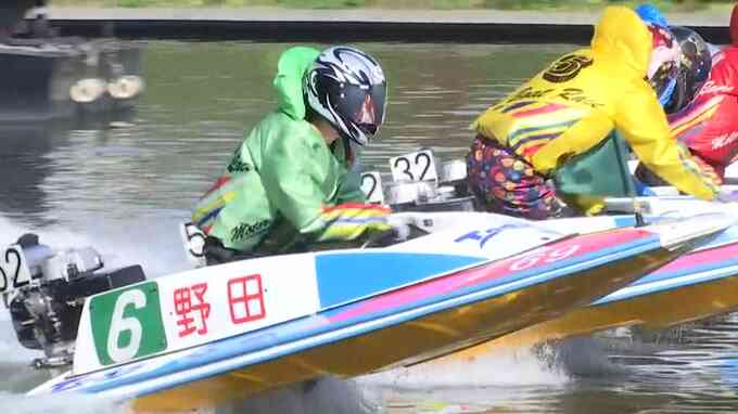レース実況「6コース、きょうがデビュー戦です。野田昇吾、埼玉西武ライオンズからボートレーサーに転身。6コースからスタートです」