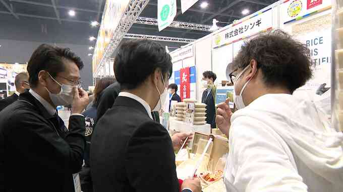 福岡市のマリンメッセ福岡で9日から2日間開かれる「FOODSTYLEKyushu」。全国各地から1000を超える企業が出展し、食に関する新商品の商談をしています。注目を集めたのが、米を原料としたストロー。食べることもできます。