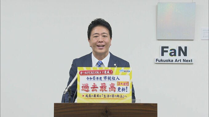 「福岡市の市税収入が過去最高を更新いたしました。しっかりと市民生活が豊かになるように市民のみなさんに還元していきたいと思います」