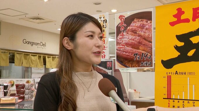 「今年は梅雨が明けるのが早かったし、暑くなるのも早くなったので、スタミナをつけるウナギの売れ行きがいいんじゃないかなと期待をしています。(7月19日の)土曜日は休日の方も多いと思いますので(例年の)1.2倍ぐらいは期待したいと思っています」