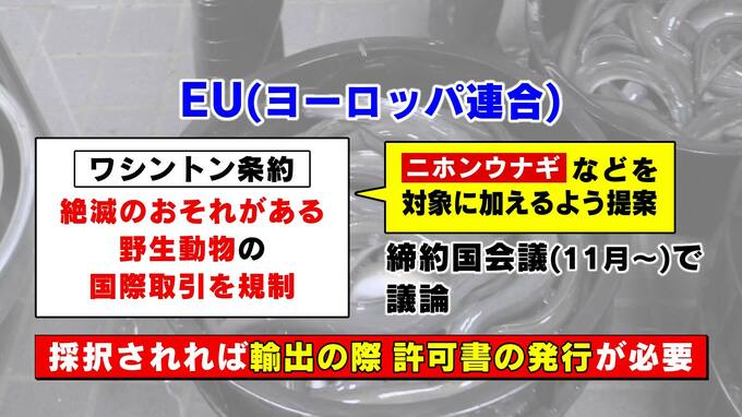 EU=ヨーロッパ連合は、絶滅のおそれがある野生動物の国際取引を規制するワシントン条約の対象に、二ホンウナギなどを加えるよう提案しました。