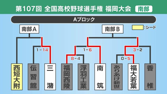 【めざせ甲子園!】夏の高校野球・福岡大会(南部)9日の結果 福大若葉・明善・春日・福島・八女工業・福岡工業・三井・福岡が3回戦進出 2025年7月10日(木) 11:38 国内 【南部Aブロック】福大若葉が3回戦進出 福大若葉3ー2香椎