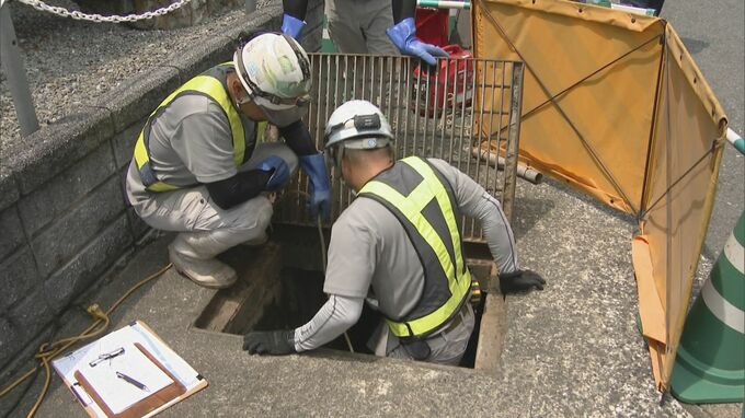 市は、地下水路のふたが壊れて、アスファルトが崩れ落ちたとみていて、目視で水路の形状や劣化状況を確認していく予定です。