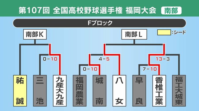 【めざせ甲子園!】夏の高校野球・福岡大会(南部)10日の結果 九産大九州・福岡舞鶴・八女・香椎工業・福翔・糸島・大牟田・博多が3回戦進出 2025年7月10日(木) 19:23 国内 【南部Fブロック】八女・香椎工業が3回戦進出 八女5ー4城南 香椎工業13ー3福工大城東
