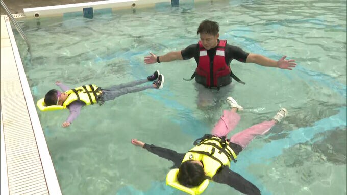 「何があってもこのまま浮いとったら溺れんけん」「平泳ぎと同じ感じで泳いだら意外と進みます」