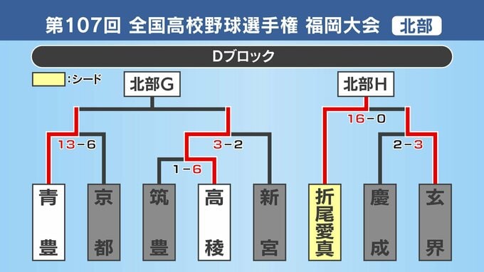 【めざせ甲子園!】夏の高校野球・福岡大会(北部)11日の結果 シード校の育徳館敗れる 東海大福岡・希望ヶ丘・折尾愛真・東筑・九国大付・ノーシードの小倉商業がベスト32進出 2025年7月11日(金) 19:57 国内 【北部Dブロック】シード校・折尾愛真がコールド勝ちでベスト32進出 折尾愛真16-0玄界
