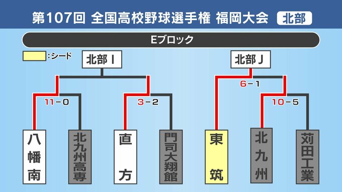 【めざせ甲子園!】夏の高校野球・福岡大会(北部)11日の結果 シード校の育徳館敗れる 東海大福岡・希望ヶ丘・折尾愛真・東筑・九国大付・ノーシードの小倉商業がベスト32進出 2025年7月11日(金) 19:57 国内 【北部Eブロック】シード校・東筑がベスト32進出 東筑6-1北九州