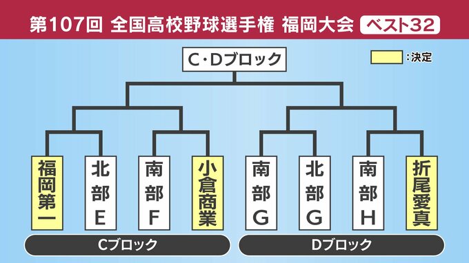 夏の高校野球 福岡大会トーナメント表(ベスト32~決勝) 11日は13校がベスト32進出決める 参加132ーム(134校)の頂点は 2025年7月11日(金) 19:54 国内 【ベスト32~準々決勝】CDブロック 福岡第一・ノーシードの小倉商業・折尾愛真がベスト32進出