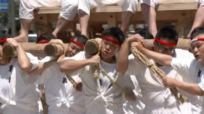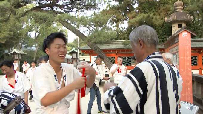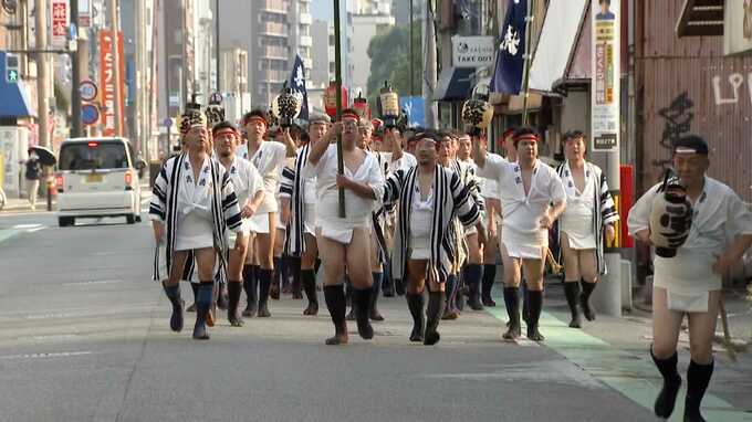 7月1日、赤手拭以上だけが参加できるお汐井取りでは高張提灯を持つ兄・篤司さんの後ろを父・竜次さんと並んで碩了さんが歩きます。