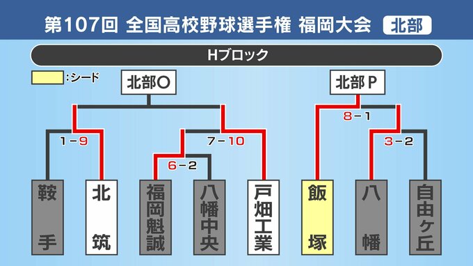 【めざせ甲子園!】夏の高校野球・福岡大会(北部)12・13日の結果 北九州市立・小倉工業・嘉穂東・高稜・直方・戸畑・東筑紫学園・飯塚がベスト32進出 2025年7月14日(月) 13:05 国内 【北部Hブロック】コールド勝ちの飯塚がベスト32進出 飯塚8-1八幡