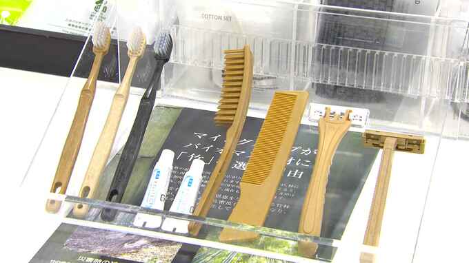 会場には、竹を原料とした歯ブラシも並びました。単にプラスチックの代替品というわけではありません。宿泊施設などで使われた後に、製造メーカーが回収し、リサイクルすることも想定されています。