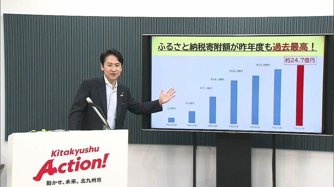 「寿司の都にリンクさせた返礼品も好評」北九州市のふるさと納税寄付額が24億円7200万円で過去最高を更新 2025年7月24日(木) 11:56 国内 北九州市は24日、昨年度のふるさと納税の寄付額が過去最高を更新したと発表しました。北九州の武内市長によりますと、昨年度の北九州市へのふるさと納税の寄付額は前年度からおよそ2億円増え、24億7200万円あまり…