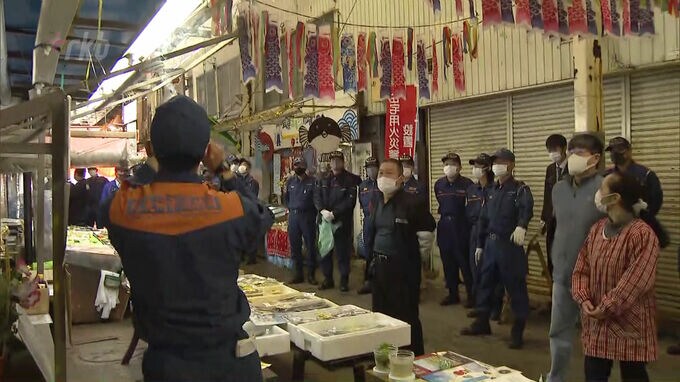 北九州市の商店街で火災が相次いだことを受け、若松区の商店街では18日、消防が防火のための見回りを実施しました。
