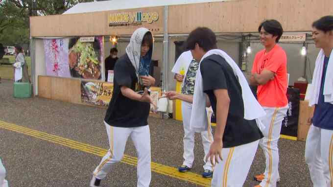 たこ焼きや焼きそば、ラーメンなど…最終日ということでキャンプ地に出店しているテナントの、売り上げに貢献した選手たちでした。