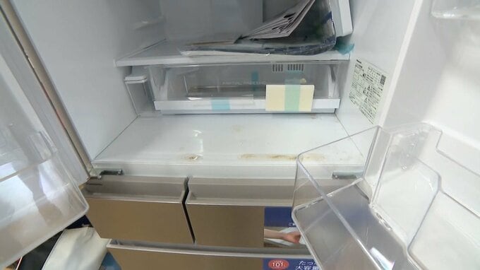 「ここまで水が入っちゃったんですね。倒れて浮いていたからですね。冷蔵庫は重たいから沈むかと思ったら、密閉してあるから軽いみたいで。冷蔵庫も浮いていた」