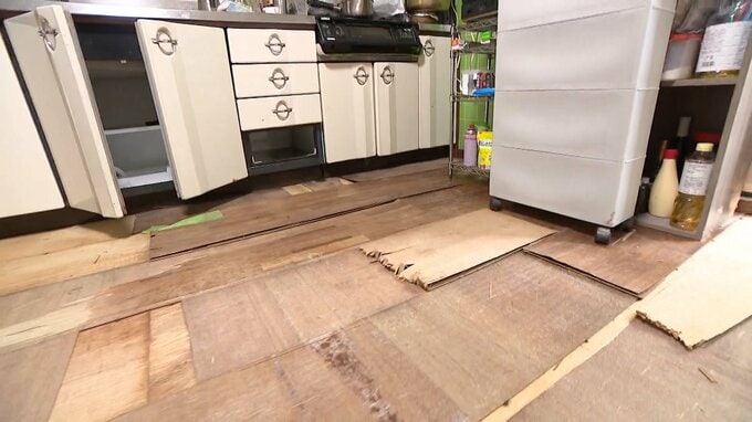 「くさいから。くさいし、浮いてくる。簡単に床板がはがせる状態」