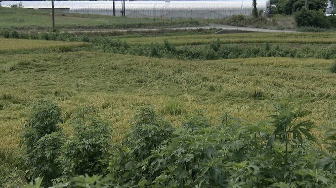 「本当だったら今日とか昨日ぐらいから収穫しようかというところだった。雨の激しさで倒された感じ。早期米の6割ぐらいは倒れている」