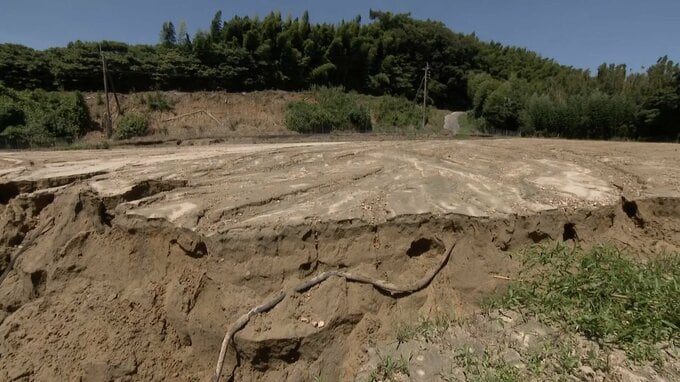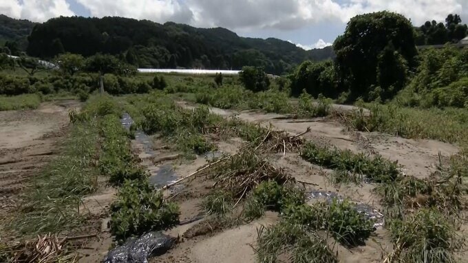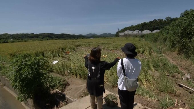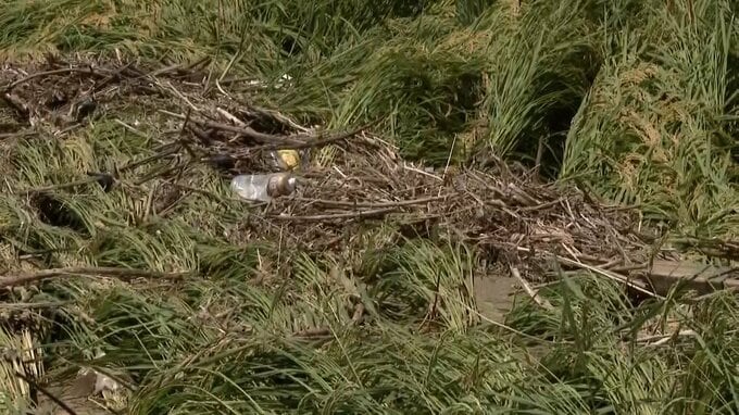 「水路が詰まっているので、次の田んぼにも(水が)降りていかない。(土砂の影響で)コンバインが入れられない。生きてるところの稲刈りをするにしてもまずあのごみを撤去しないと(コンバインが)入れられないから。撤去が先ですね」