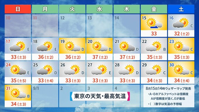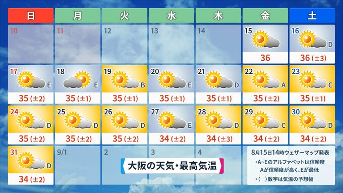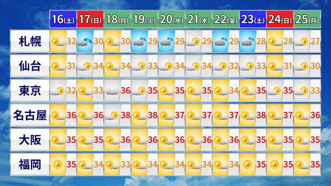 お盆を過ぎても、夏の太平洋高気圧の勢力が強く、全国的に危険な暑さが続くでしょう。