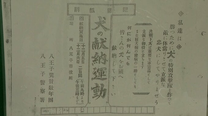 資料館にはペットの供出を呼びかける当時の回覧板なども展示されています。