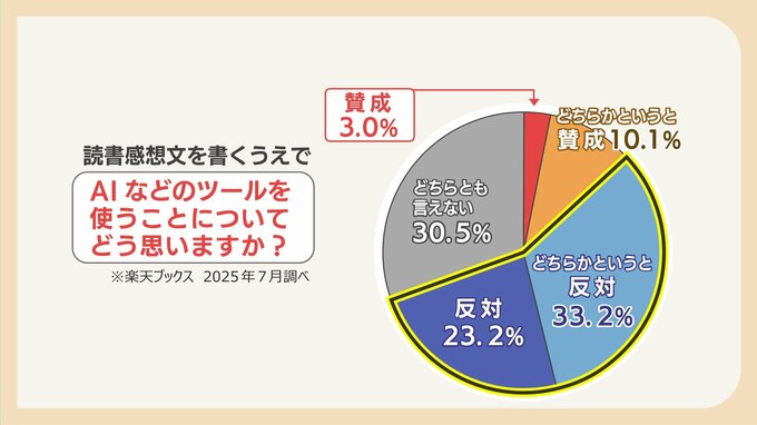 読書感想文を書くうえで、AIなどのツールを使うことについてどう思いますか?との問いに対し、反対派が56.4%と半数を超えています。