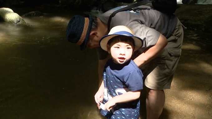 残暑をふきとばす、青もみじと「明神の滝」 涼し気な映像と音で涼を 福岡・糸島市 2025年8月21日(木) 14:20 国内 川の水も冷たい 途中、川で北九州から来た男の子と遭遇しました。 Q 何かいた? 男の子「うん、おさかな」 Q 捕まえた? 男の子「まだ」 男性「川の水は冷たいですけど、気持ちいいですよ」