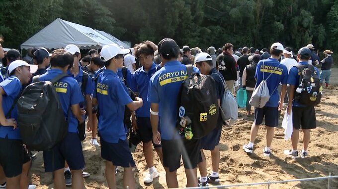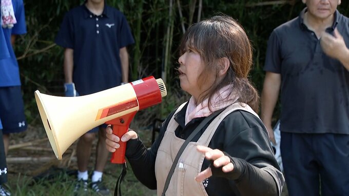 RKB 武田華奈 リポーター「午前中から立っているだけで汗が噴き出るような暑さのなか、みなさん手作業で石拾いを進めています」