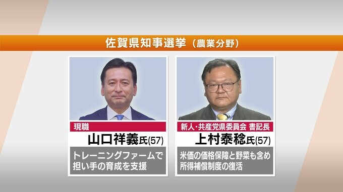 任期満了に伴う佐賀県知事選挙が12月1日に告示されます。現職の山口祥義氏と、新人で共産党県委員会書記長の上村泰稔氏の一騎打ちとなる見通しです。農業が盛んな佐賀県ですが、農家の高齢化が進み耕作放棄地が増えるなど様々な課題が浮き彫りとなっています。