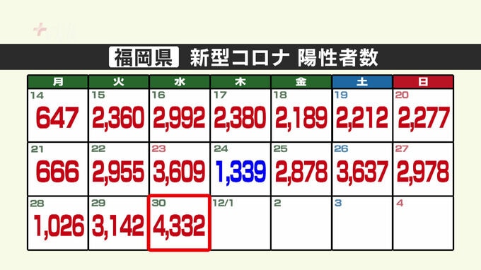 新型コロナ陽性(30日)福岡県4332人 4000人超は9月10日以来 2022年11月30日(水) 17:26 国内 新型コロナウイルスの感染状況です。福岡県は30日、新たに4332人の陽性を発表しました。4000人を超えるのは今年9月10日以来となります。発表自治体別の内訳は、福岡市が1496人、北九州市が6…
