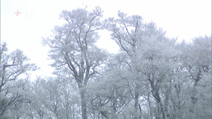 英彦山の山頂付近ではけさ、樹木の枝先が凍る霧氷(むひょう)が見られました。九州北部地方は非常に強い寒気が流れ込み1日の日中の予想最高気温は10℃前後と1月並みの気温にとどまる見込みです。