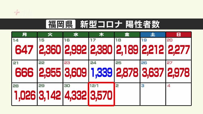 新型コロナ、福岡の12月1日発表は3570人陽性~7日連続で前週上回る 2022年12月1日(木) 16:53 国内 福岡県は1日、新型コロナウイルスの検査で3570人が陽性だったと発表しました。病床使用率は前の日に続いて30%を超え、県は独自のコロナ警報を発動することを決めました。◆病床使用率31.8%福岡県…