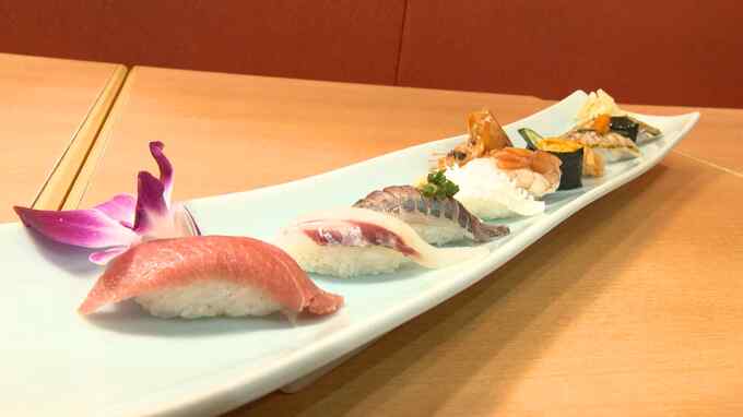 RKB原口佳歩「福岡市天神の寿司店の前には、平日にもかかわらず列ができています。外国の方も多いですね」