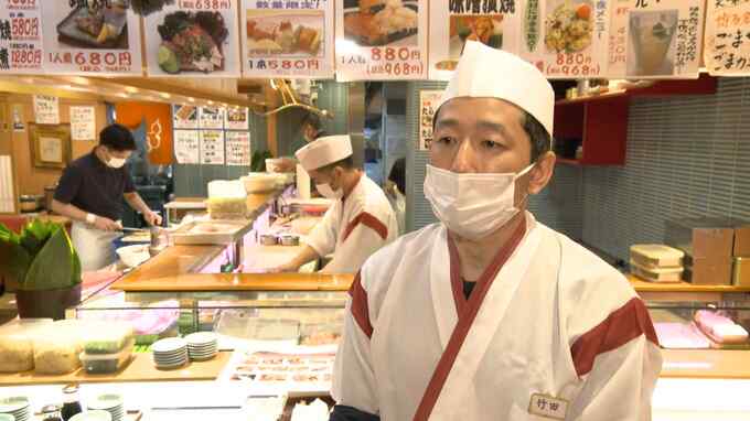 ひょうたん寿司 竹田和幸副店長「韓国の方が、規制がなくなったということでどんどん増えてはきていますね。行列ができているので、ありがたいと感じています。外国語のメニューを増やすことと簡単な韓国語、英語を少し勉強して、しゃべれるように心がけて接客しています」