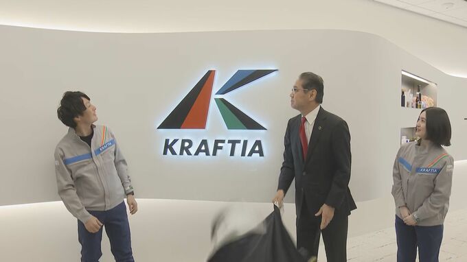 福岡市天神のワンフクオカビルディングに入居する「九電工」本社で新社名「クラフティア」のロゴがお披露目されました。