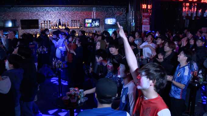 午前4時のキックオフにもかかわらず、福岡市中央区のパブリックビューイング会場には約200人のファンが応援に駆けつけました