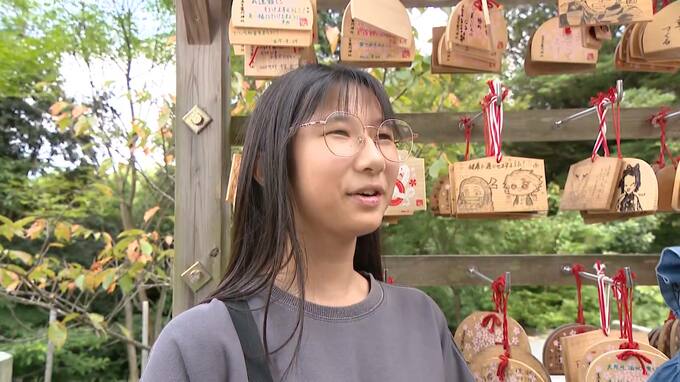 「とっても素晴らしい。楽しいです。この鬼滅の刃の絵馬がすごいですね。映画とアニメを何度も見ました」