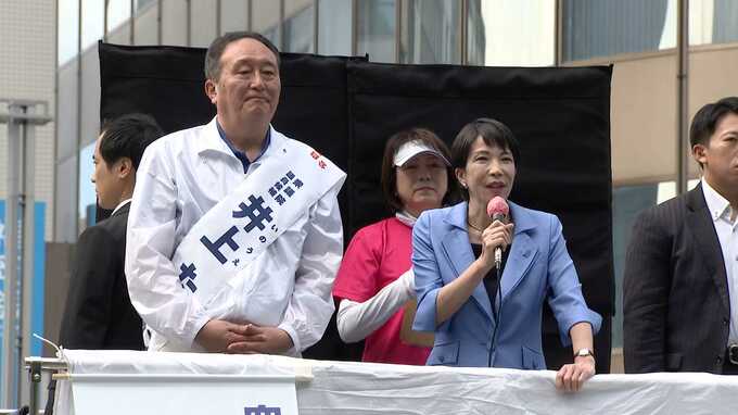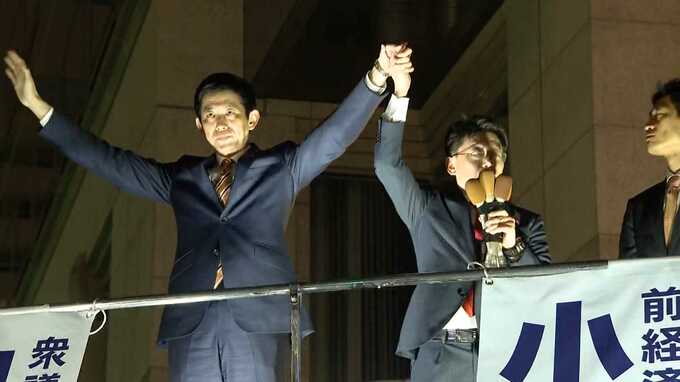 去年実施された衆院選の終盤、自身の応援演説に駆けつけた高市氏を支持する福岡1区選出の井上貴博衆院議員。