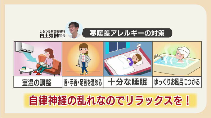 しらつち耳鼻咽喉科の白土秀樹院長によると、寒暖差アレルギーは花粉症などのアレルギー性鼻炎とほとんど同じ症状だということですが、見分け方があります。
