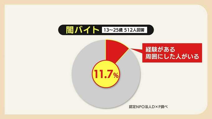 また、NPO法人が13歳から25歳を対象にしたアンケート調査では、10人に1人以上が闇バイトを「実際に経験がある・周囲に経験した人がいる」と回答しました。