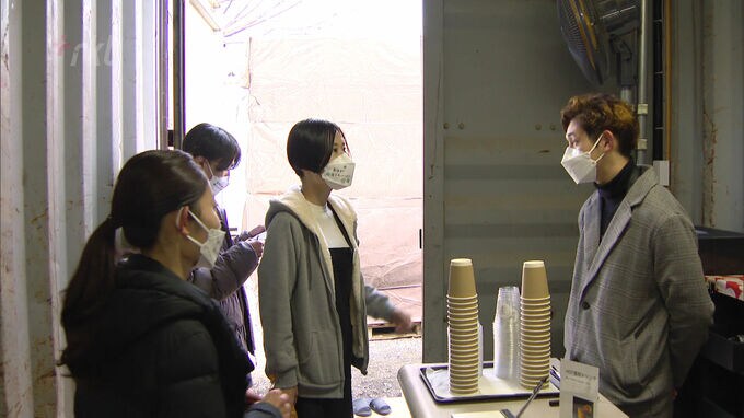 接客を担当するのは「吃音」のある若者たち。マスクに来店客へ伝えたいメッセージを書き込んでいるのは、大学1年生の平田蓮太郎さんです。「いらっしゃいませ!お飲み物をお伺いします!」イメージトレーニングの最中です。