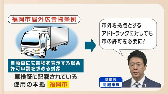 このため市は、福岡市以外を拠点とするアドトラックに対しても、市内を走る上で市の許可を必要とする条例を制定したい考えです。