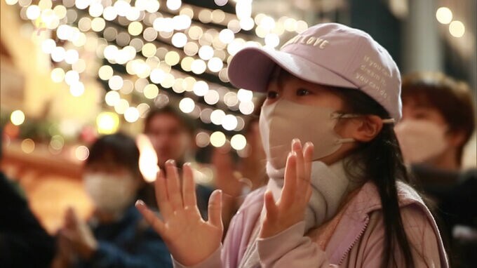 我慢の冬。外で「第九」を歌うのはテノール歌手。寒稽古の子供たちのかけ声が再び聞こえた。“復活”のサックスと女性たちのゴスペルが積み重なっていく。そこに「陽性者0」の速報を伝える男性アナのナレショーンが割り込む。2021年12月17日は、福岡県が毎日発表する新型コロナの陽性者が438日ぶりにゼロだったのだ。