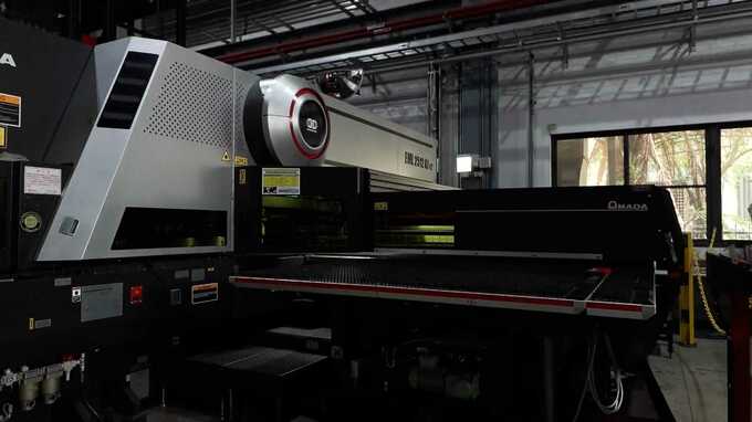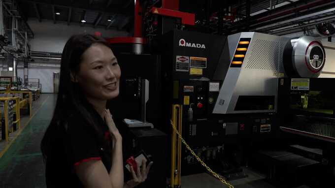 「ここが加工のスタートのところです。スチールとステンレスとアルミがメインで板状ではいってきてこのあと加工して成型していきます」