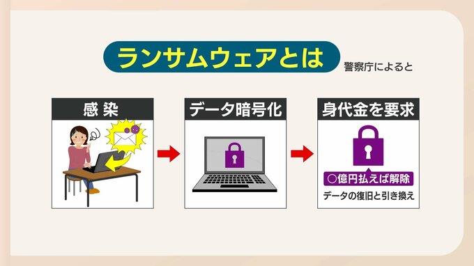 ランサムウェア攻撃を受けた場合、企業はどういう対応を強いられるのか、サイバーセキュリティ製品などを開発する福岡市の企業の代表に話を聞きました。