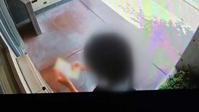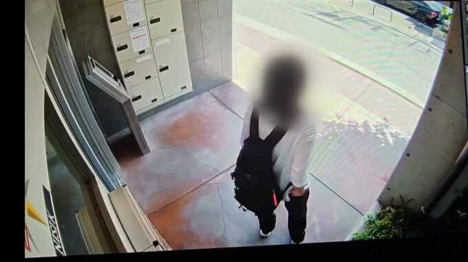 福岡市中央区のマンションの玄関に設置されている防犯カメラの映像です。