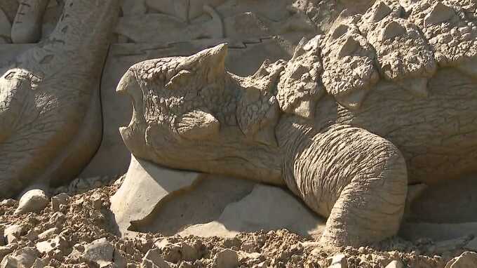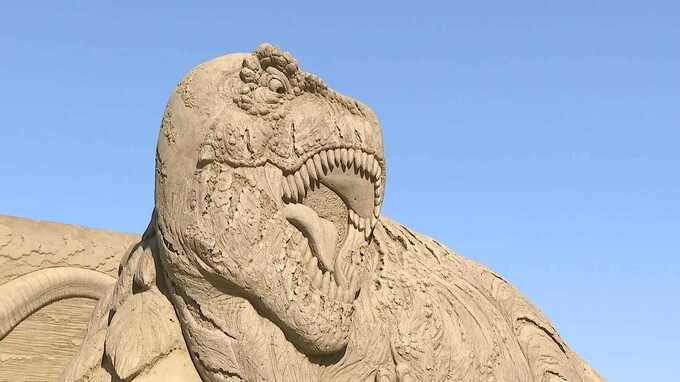 「特設会場に登場した恐竜ですが、皮膚などが細かく再現されていて砂で作られたとは思えないほどの迫力となっています」