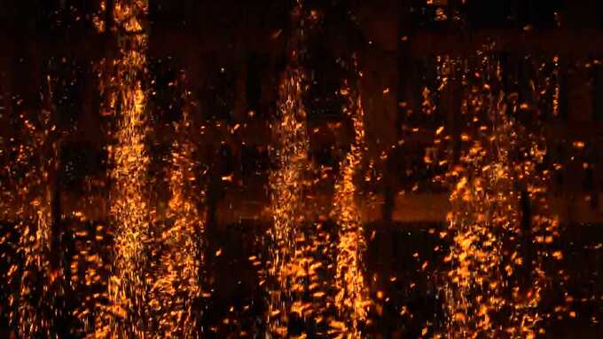 木炭の粉を使うことで落火棒は3時間近く燃え、時間がたつにつれ華やかになっていきます。
