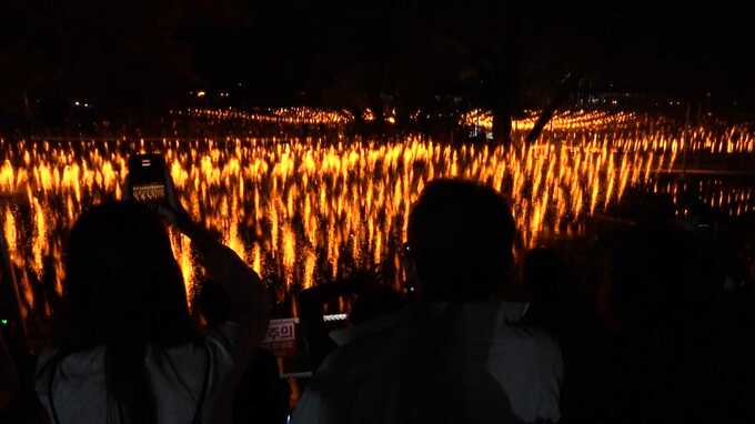 韓国第2の都市・釜山から車で1時間半ほどのところにある咸安郡に続々と集結する日本人たち。その目的は3000本の「落火棒」から舞い散る火の粉が幻想的な世界をつくり出す「咸安(ハマン)落火(らっか)ノリ」。