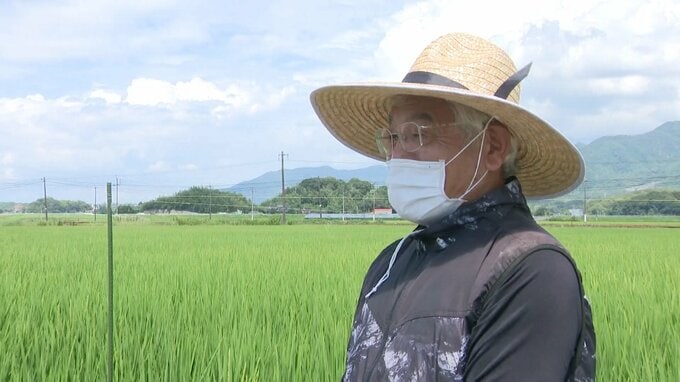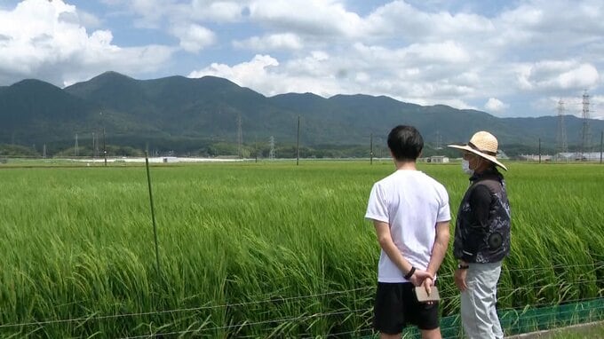 「向こうがヒノヒカリ。(それよりも)背が高いんですよね。これよりまだ穂が伸びますから」