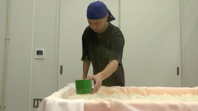 酒の原料に欠かせない米麹を造る作業の一つです。その後は仕込みの工程に入っていきます。